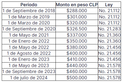 • A partir del 1 de julio de 2024, el salario mínimo debe ser de $500.000 CLP según la ley.